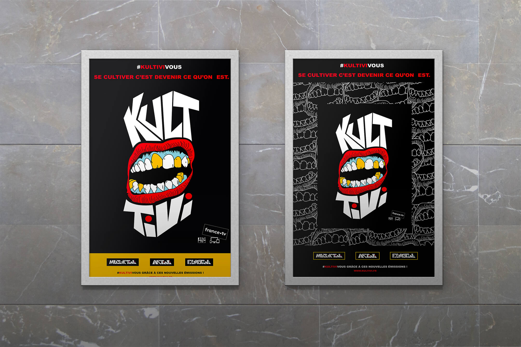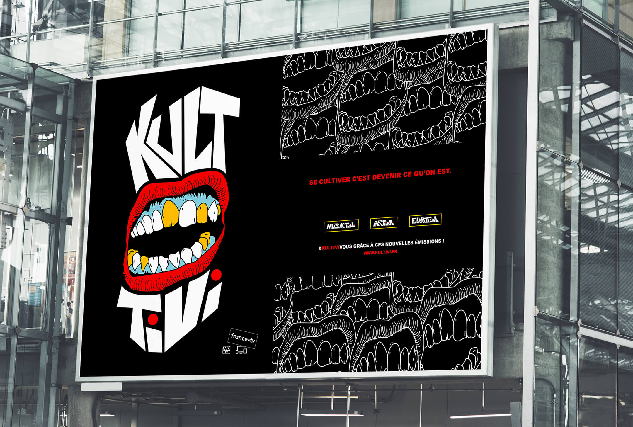 I created the full visual and graphic identity of KULTIVI, a new digital TV channel launched by France Télévisions.